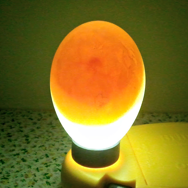 It is necessary to candle eggs for fertility when you are incubating eggs artificially using an incubator. Its a critical stage of development as its where the chick will take its first breath of air. Next place the larger end of the egg against the light and tilt it until you get the best view.