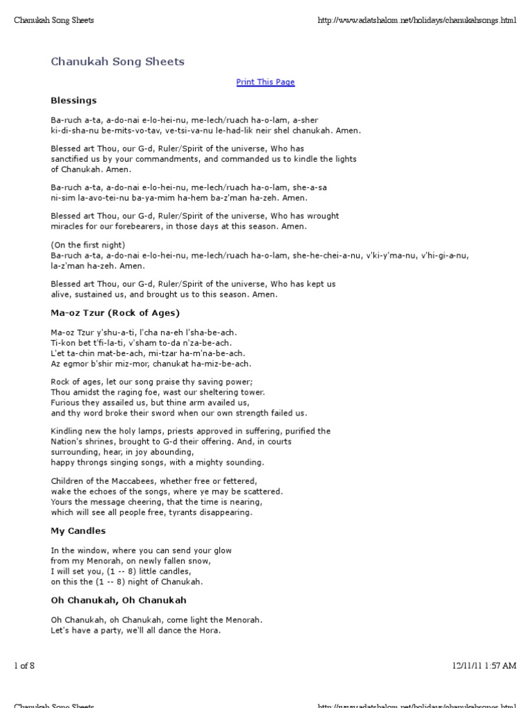 Chanukah blessings and songs. Hanukkah blessings songs zigdon nachum families sandiego 2003. Listen to the lyrics of traditional chanukah hanukkah songs hear the blessings recited on the chanukah menorah and more. Traditional prayer sung after the lighting of the menorah. White christmas rudolph the red nosed.