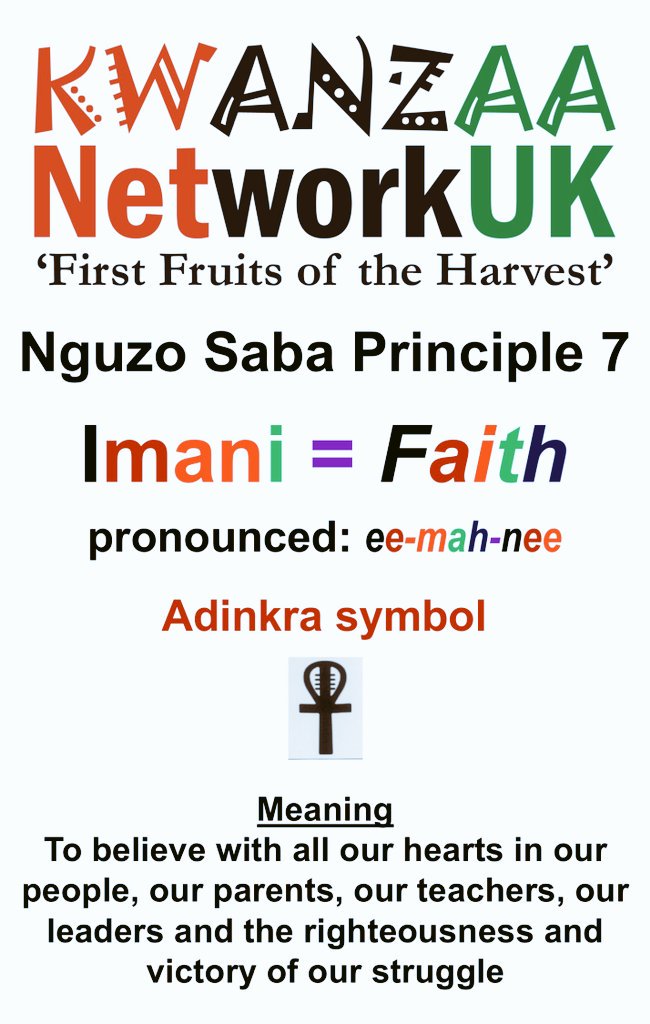 Crops mazao symbolizes the fruits of collective planning and work and the resulting joy sharing unity and thanksgiving part of african harvest festivals. Dies ist ein rot schwarz gruen 8 x 10 kwanzaa schild imani ee mah nee glauben. To believe with all our heart in our creator our people our parents our teachers our leaders and the righteousness and victory of our struggle the seventh principle is faith which is essentially a profound belief in and commitment to all that is of value to us as a family community people and culture.