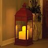 Tall the san nicola features triple pillar amber led candles which illuminate to create beautiful warm and ambient mood lighting. Lantern features an onoff switch with a six hour timer. Add the romantic glow of candlelight to any outdoor living space without the worry over melting wax thanks to our flameless san nicola outdoor battery operated lantern. Simply activate timer mode at the desired time and the lantern will stay on for six hours turn off for 18 and then illuminate again at the same time every day.