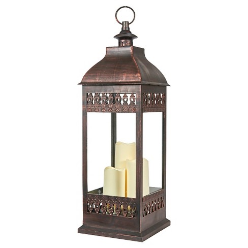 Give your home a rustic chic finish minus the actual flammable materials by using this lovely san nicola triple led candle lantern instead. This statuesque unit stands 285 tall and features triple pillar amber led candles that illuminate to create beautiful warm and ambient mood lighting. Jun 22 2014 add the romantic glow of candlelight to any outdoor living space without the worry over melting wax thanks to our flameless san nicola outdoor battery operated lantern.